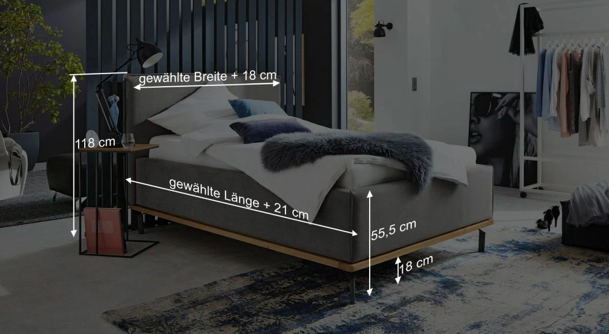 Breite + 18 cm - Kopfteilhöhe: 118 cm