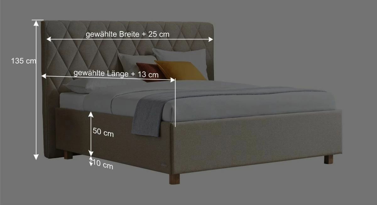 Breite + 25 cm - Kopfteilhöhe: 135 cm