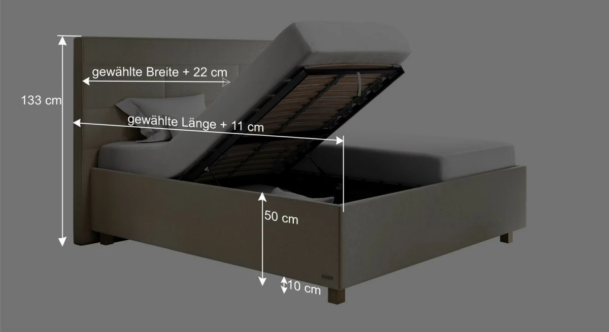 Breite + 22 cm - Kopfteilhöhe: 133 cm