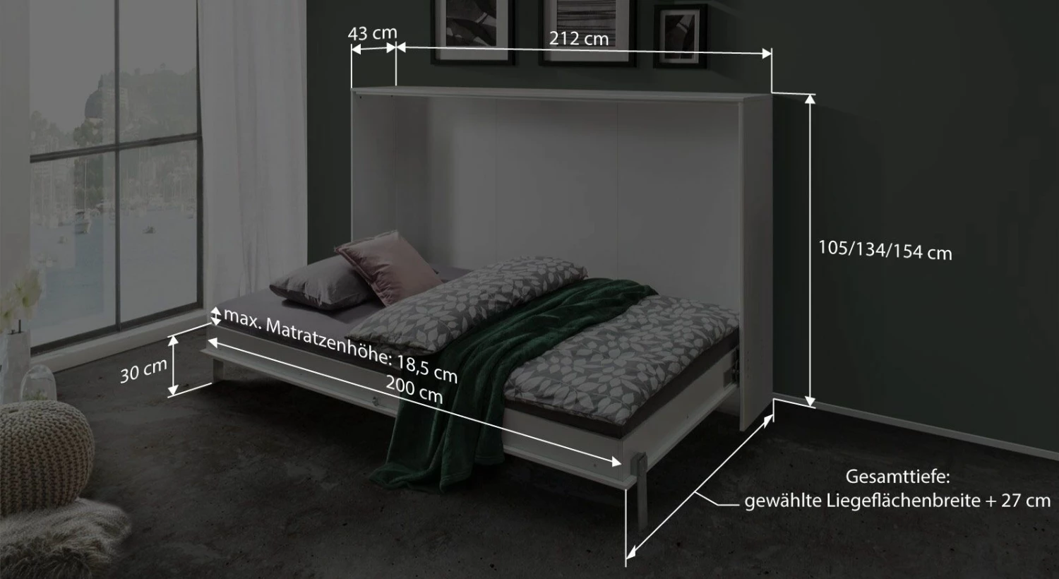 Breite + 27 cm - Bettrahmenhöhe: 30 cm