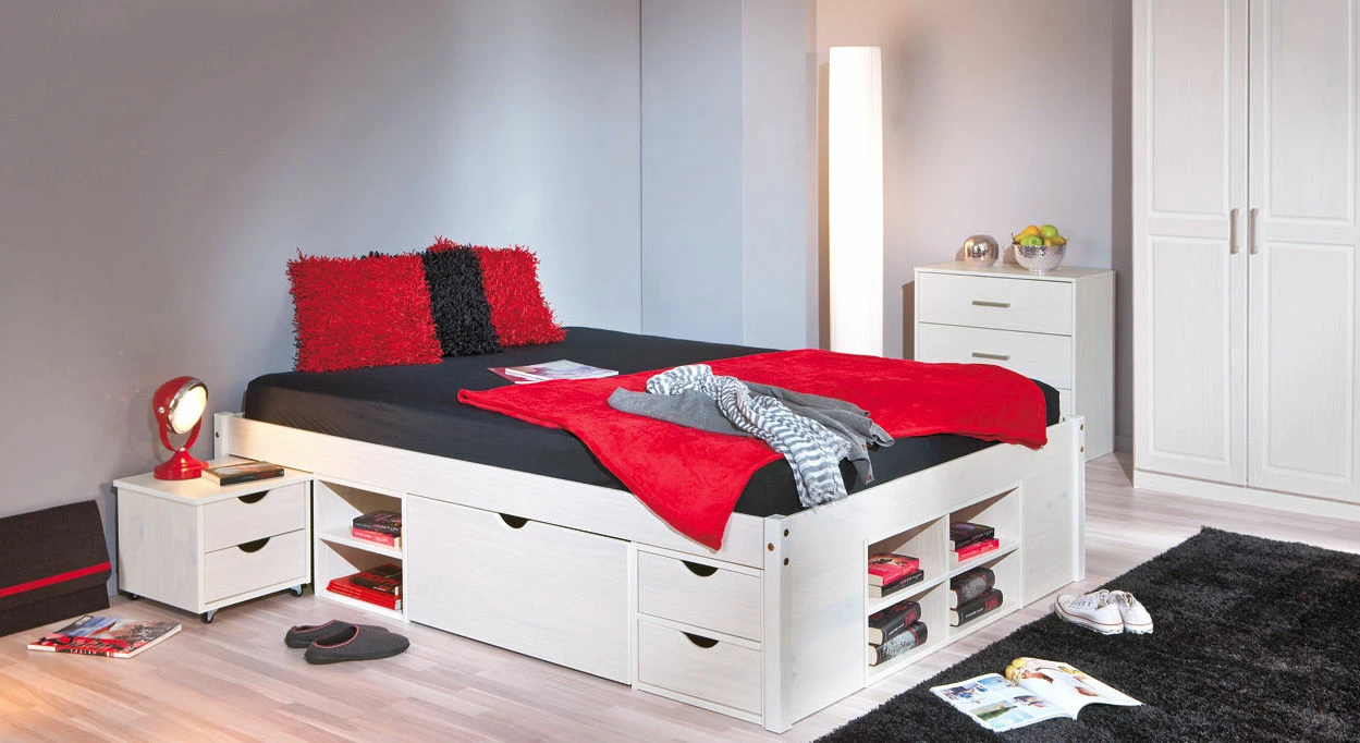 Ab 140 cm Bettbreite gilt die maximale Belastbarkeit pro Bettseite, wenn 2 Lattenroste in halber Bettbreite eingelegt werden.