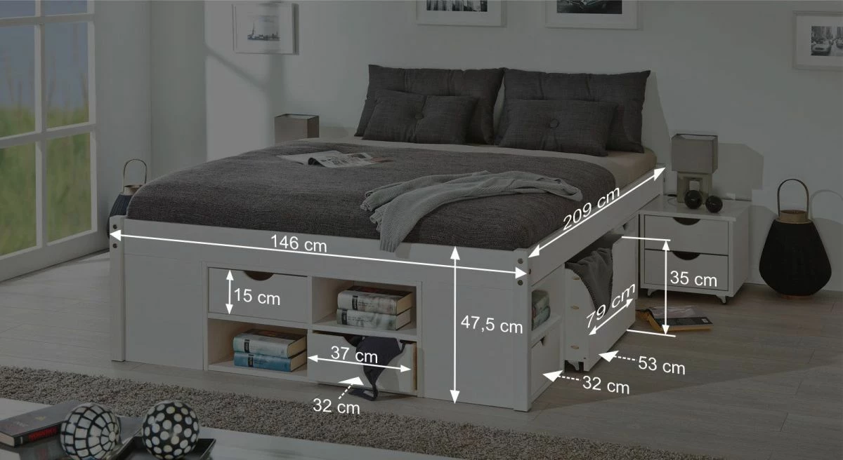 Breite + 6 cm - Bettrahmenhöhe: 47,5 cm