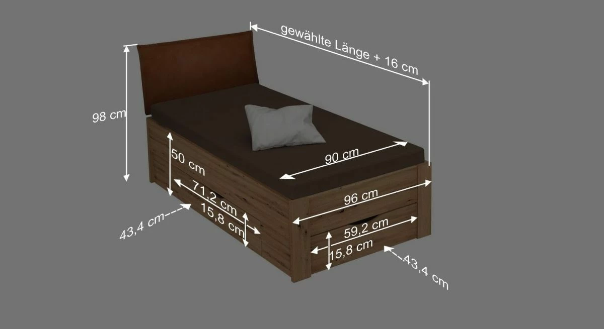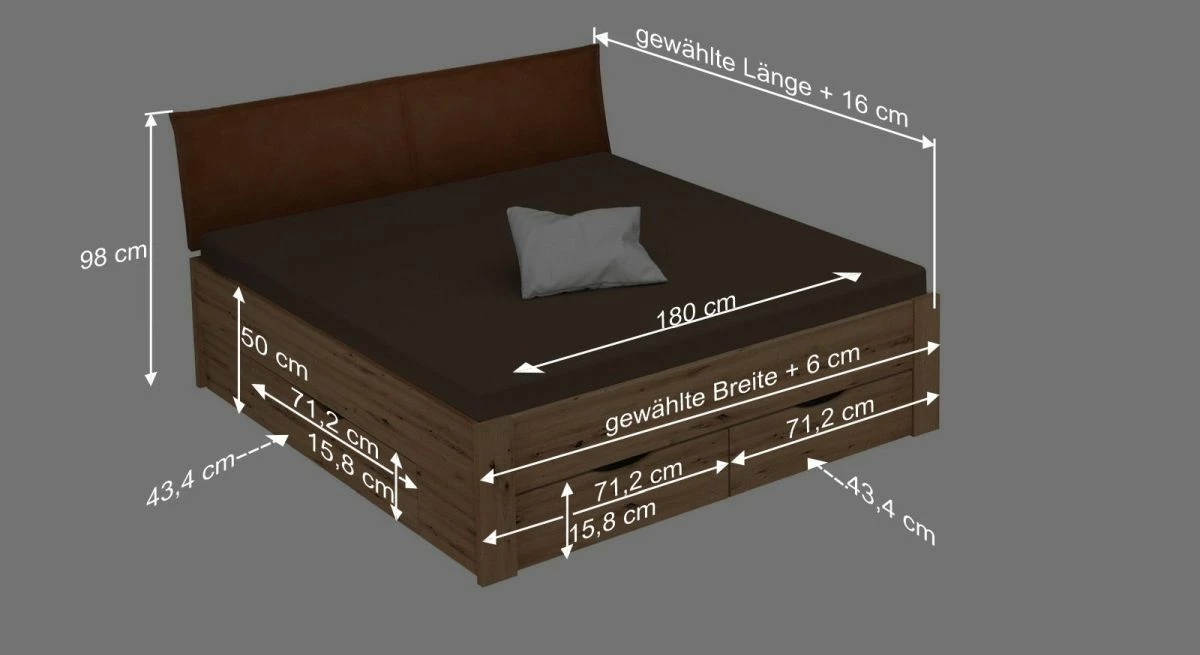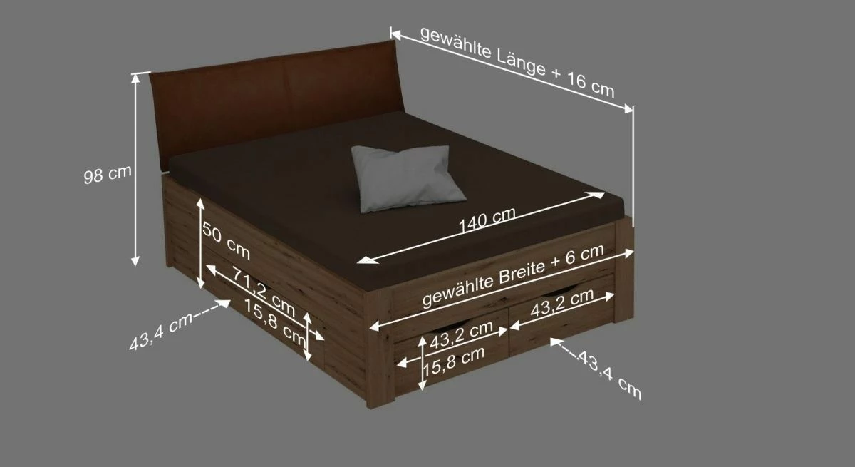 Breite + 6 cm - Kopfteilhöhe: 98 cm