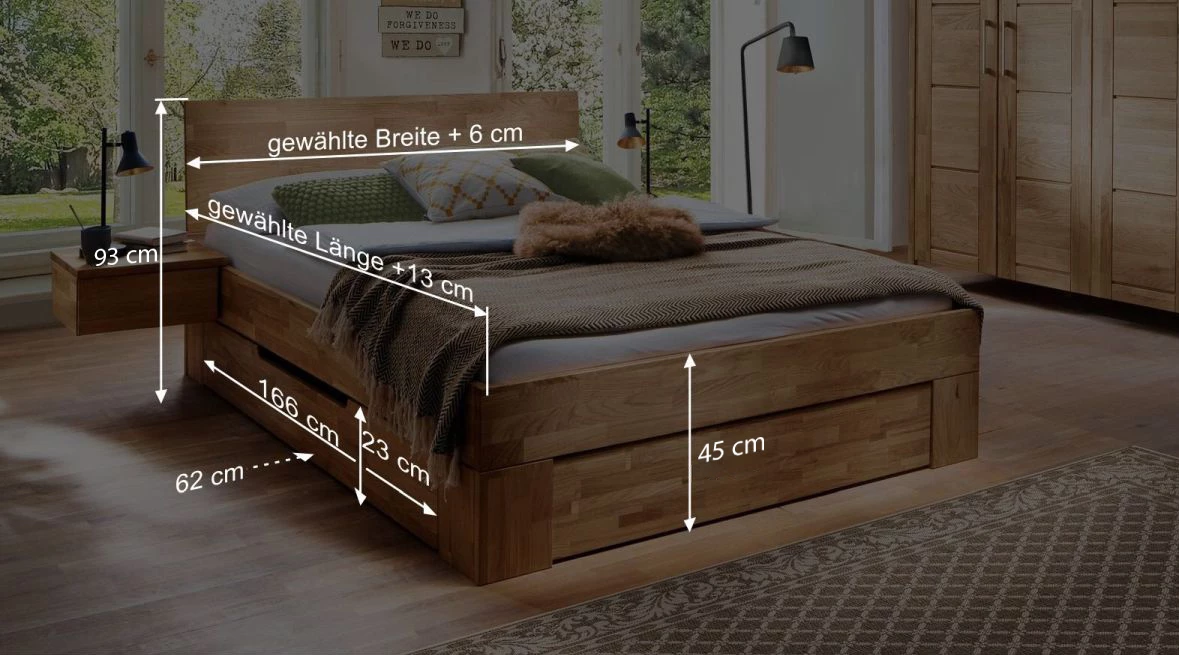 Breite + 6 cm - Kopfteilhöhe: 93 cm