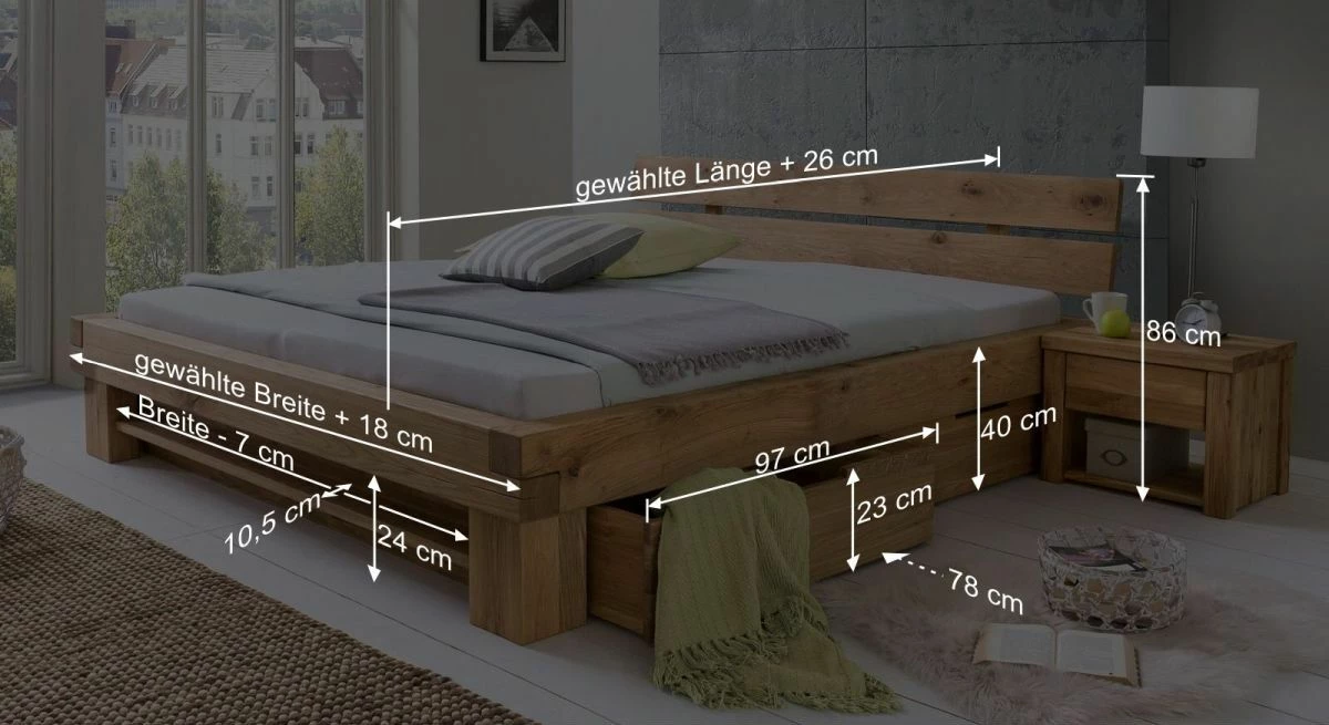 Breite + 18 cm - Kopfteilhöhe: 86 cm