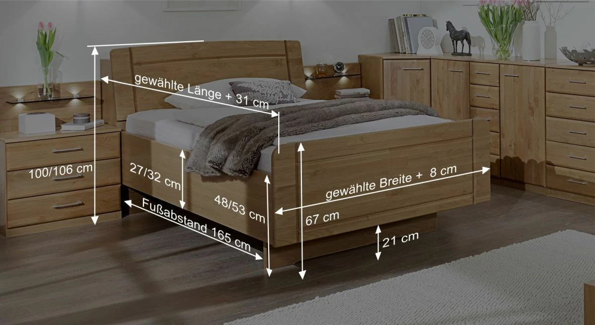 Breite + 8 cm - Kopfteilhöhe: 100 cm, 106 cm