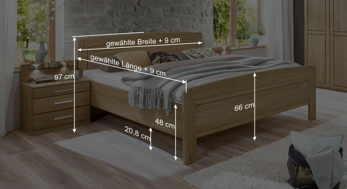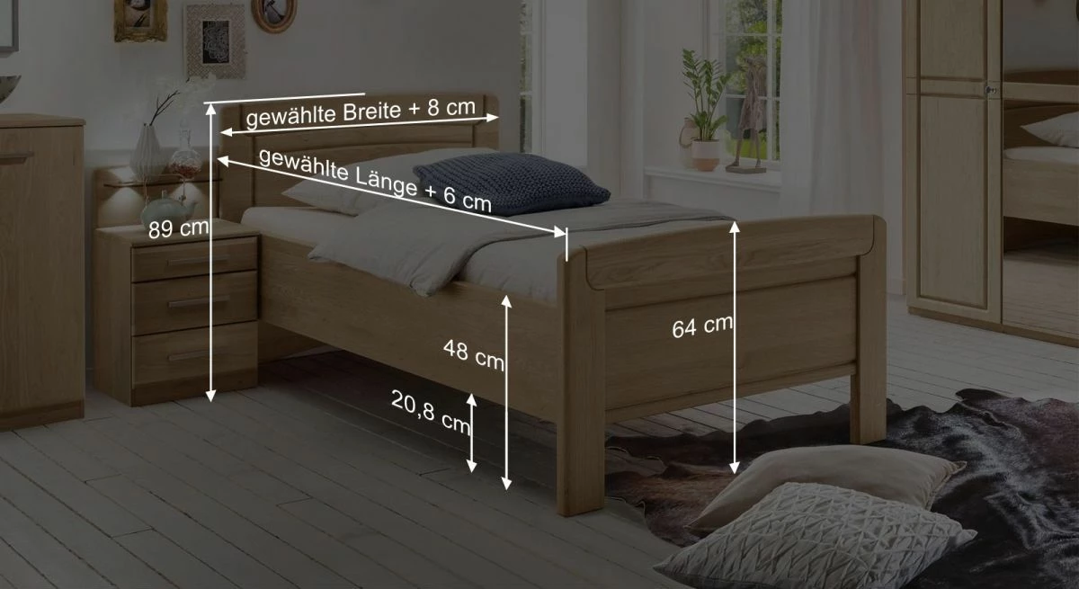 Breite + 8 cm, + 9 cm - Kopfteilhöhe: 89 cm, 97 cm