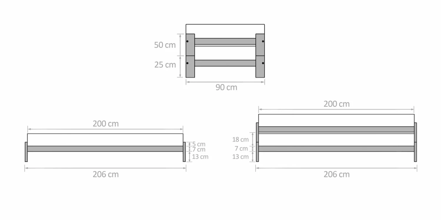 Breite + 0 cm - Bettrahmenhöhe: 20 cm, 45 cm
