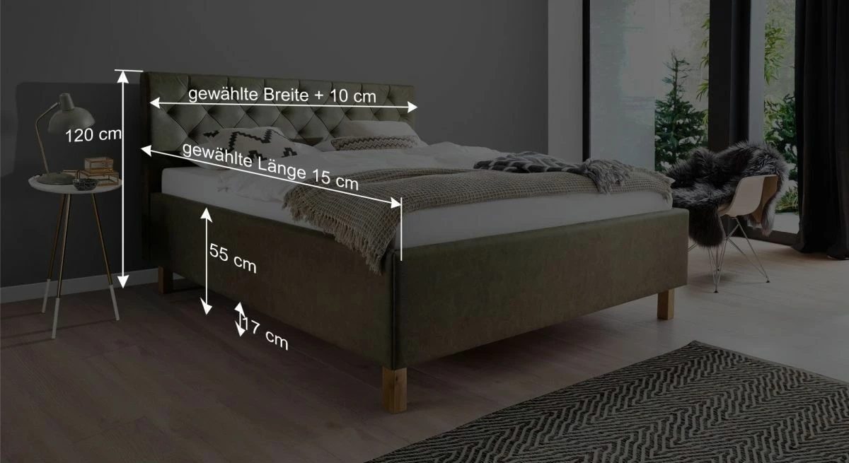 Breite + 10 cm - Kopfteilhöhe: 120 cm